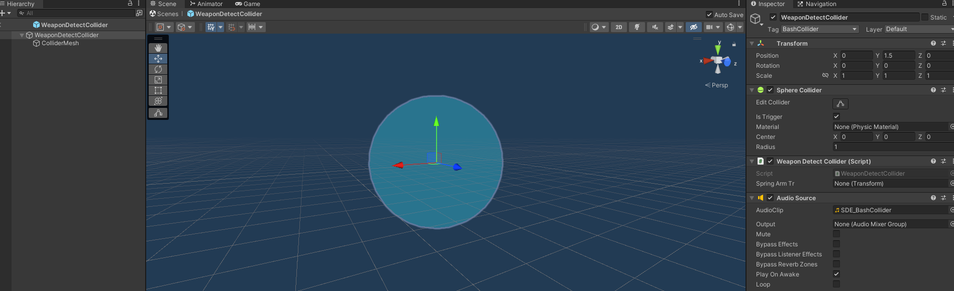 WeaponDetectColldier의 설정과 행동 루틴이 구현되었으니
