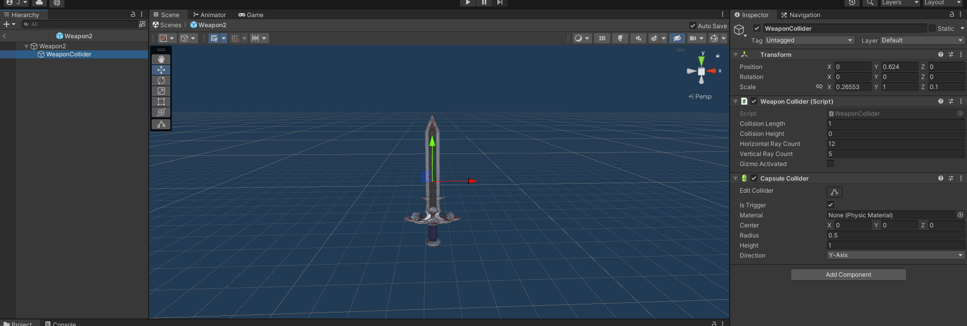 Collider 상호작용을 위한 WeaponCollider를 설계합니다.